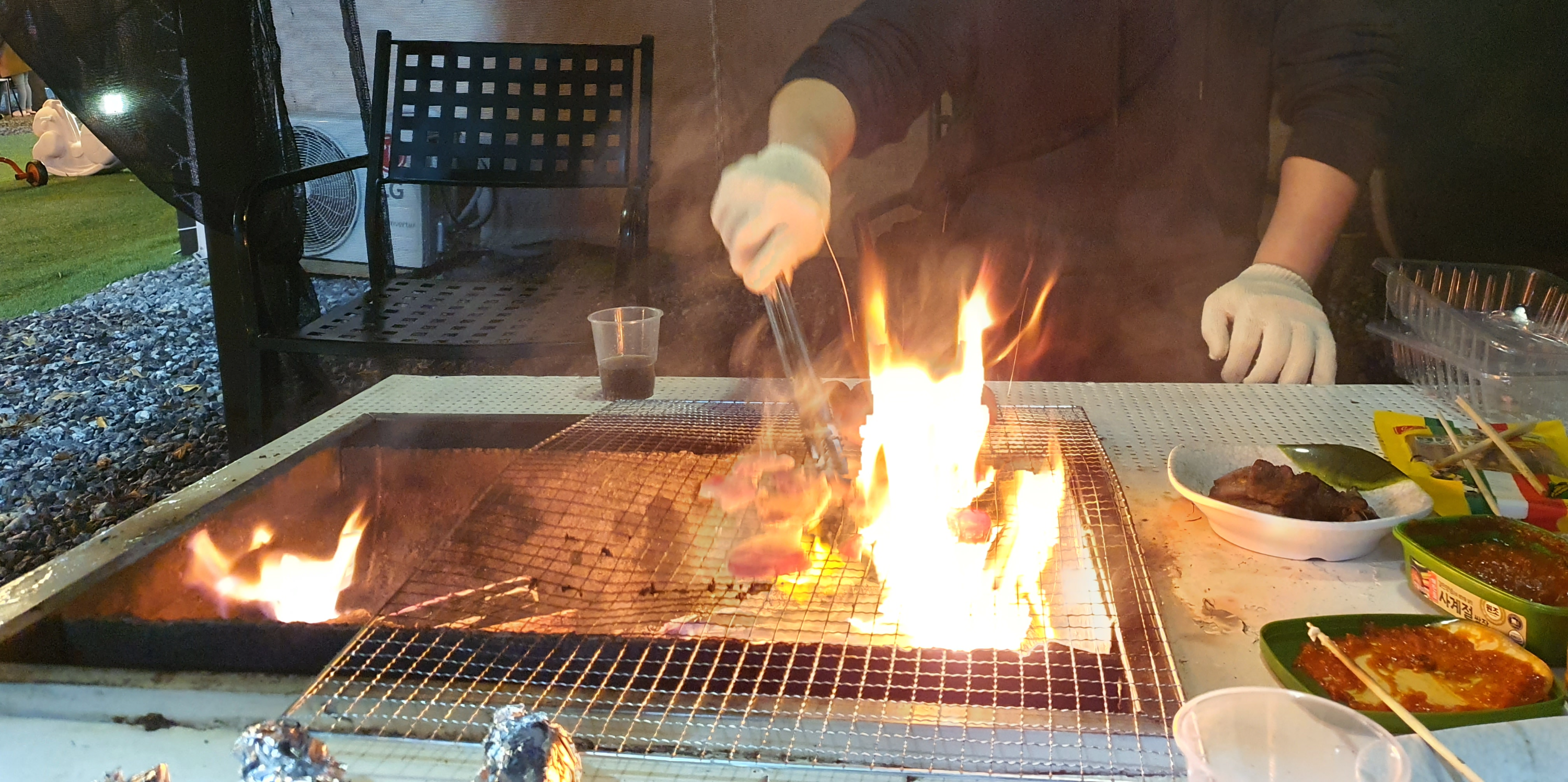 앞에 보이는 까만 천막이 바베큐 장이다. 그 뒤로 숙소가 있는데 숙소가 멀지도, 가깝지도 않기 때문에 냄새나 연기 걱정을 하지 않아도 되고 아주 편리했다. 숙소마다 거리가 좀 있어서 크게 방해 되는 소음도 없었다. 전체적으로 매우 만족!