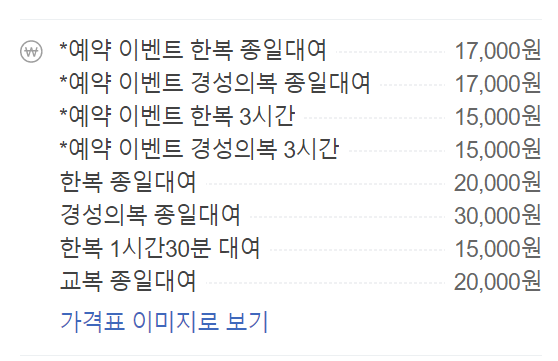 나는 한복 종일대여를 선택했고 사진 인화까지 포함되어 있는 금액이다(인당1장)