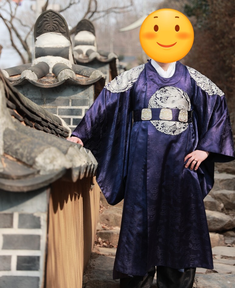 빨간색 왕 한복은 너무 식상하고 촌스러워 보여서 약간.. 남보라빛 나는 한복으로 골랐다. 돌아다녀야 하기 때문에 신발은 안 빌리고 운동화를 신어서 자름...^^;