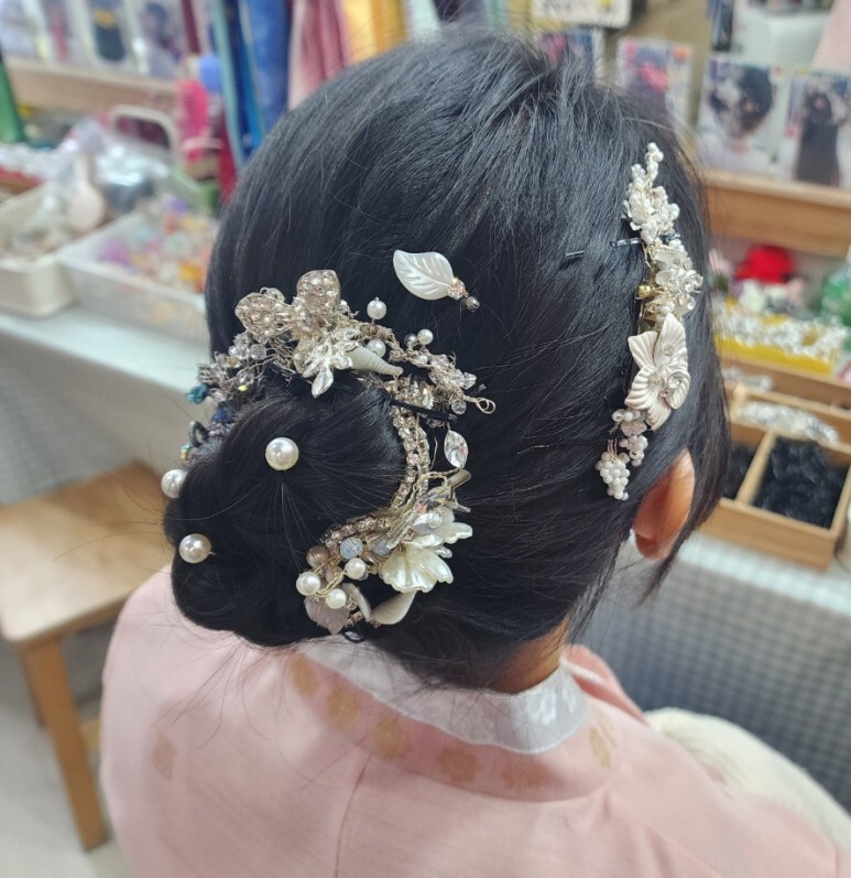 순식간에 예쁜 올리머리 완성!! 악세사리가 많지 않은 단정한 머리를 할까도 고민했지만... 오래 고민 할 시간이 없이 내 머리가 끝나있었다 ㅋㅋㅋ 머리해주시는 분 솜씨가 아주 대단하고 엄청남. 굿굿